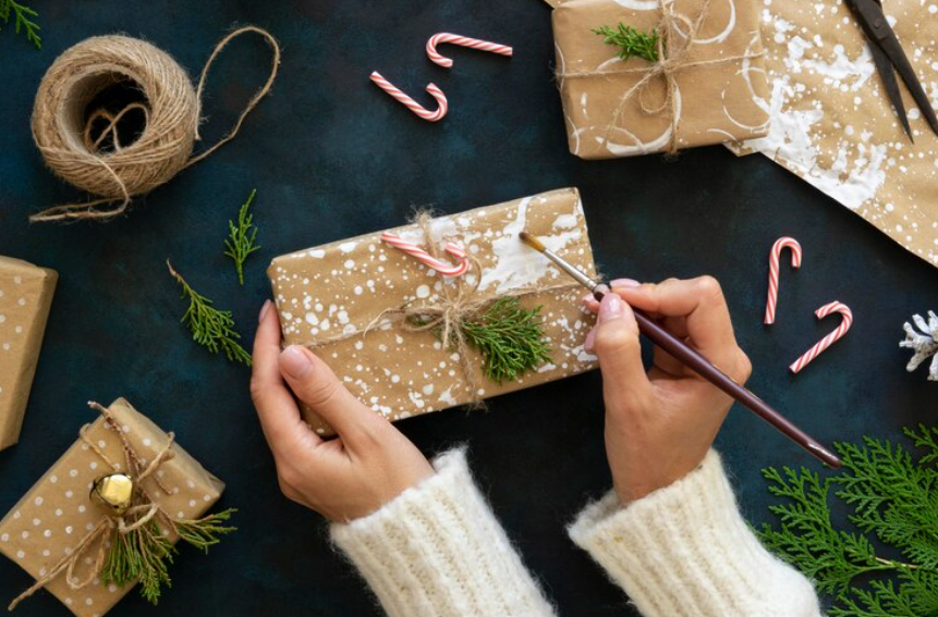 - Используйте деревянную заготовку и немного ярких идей для создания оригинальной новогодней открытки.