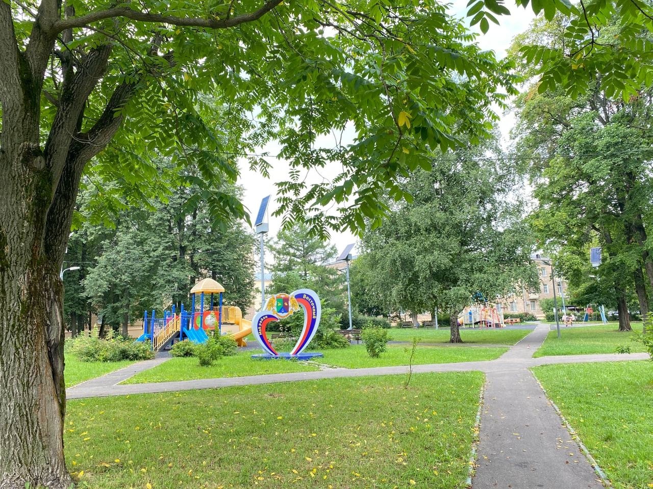 Просторный и зелёный двор по адресу: ул. Главная, д. 8, д. 10, д. 12, ул. 9 Мая, д. 7, д. 7А, д. 9, д. 11, — одно из любимых мест отдыха жителей нашего района.